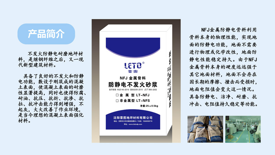 您的位置: 首頁 > 產品中心 > 地坪材料 > 不發火防靜電砂漿